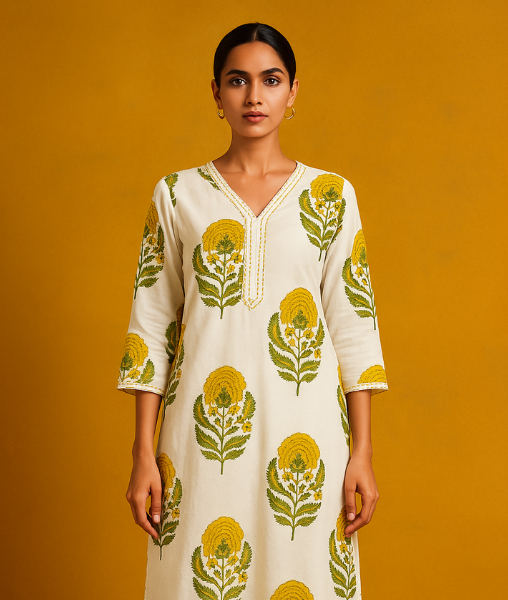 Yes, this cotton kurta for women is perfect for casual outings, office wear, and everyday ethnic styling.