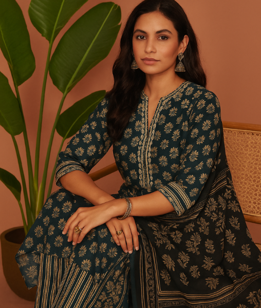 This ensemble offers effortless ethnic style and everyday versatility a must-have for your wardrobe.