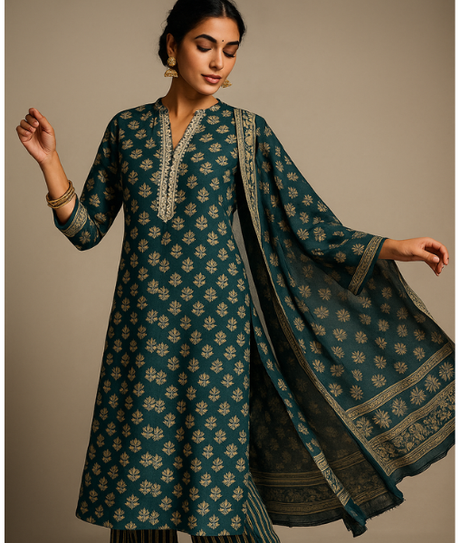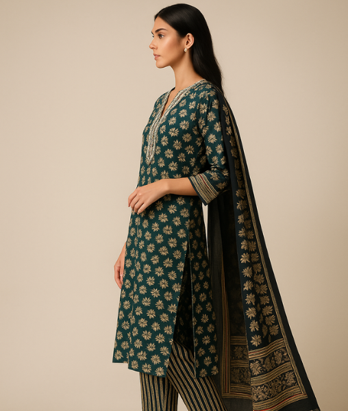 The SAAZ Cotton Kurta Pant Dupatta Set is an elegant and comfortable ethnic ensemble designed for women who want a complete outfit that combines style, versatility, and everyday comfort. Made from soft, breathable cotton, this set keeps you comfortable all day, making it ideal for casual outings, daily routines, college days, or festive gatherings.
