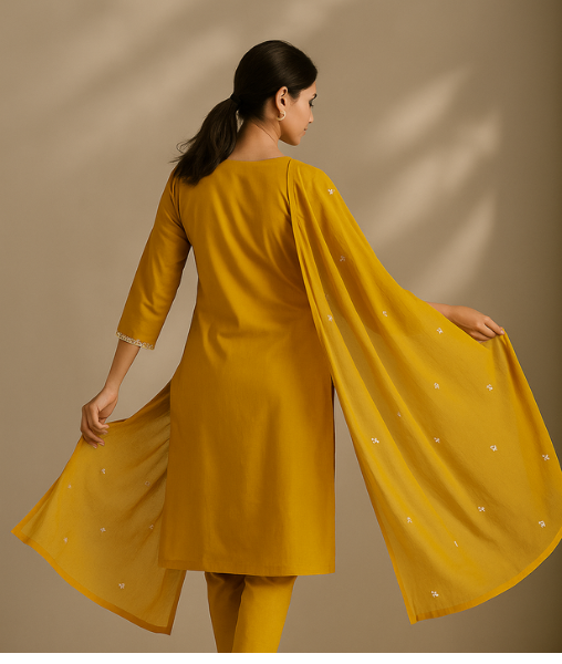 2. Is the NAQSHI Yellow Cotton Kurta Pant Dupatta Set suitable for daily wear?