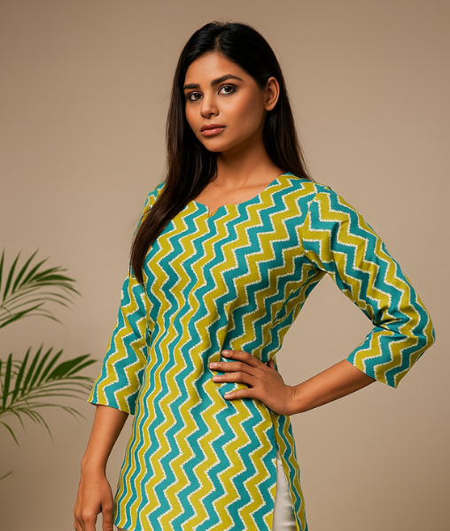 Stylish short cotton kurta suited for daily and casual ethnic wear