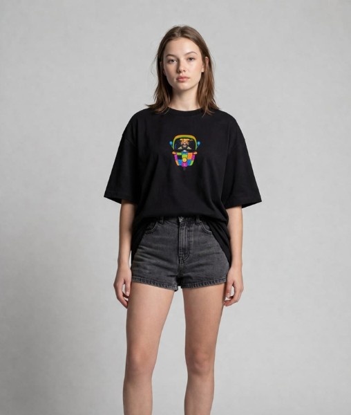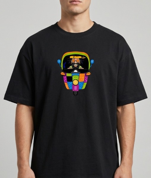 Stand out with a bold blend of culture and creativity. This oversized unisex t-shirt features a vibrant psychedelic auto rickshaw embroidery, bringing a playful street-art vibe to your everyday style. Designed for comfort and expression, it’s the perfect piece for those who love unique, conversation-starting fashion.