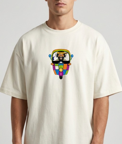 Stand out with a bold blend of culture and creativity. This oversized unisex t-shirt features a vibrant psychedelic auto rickshaw embroidery, bringing a playful street-art vibe to your everyday style. Designed for comfort and expression, it’s the perfect piece for those who love unique, conversation-starting fashion.