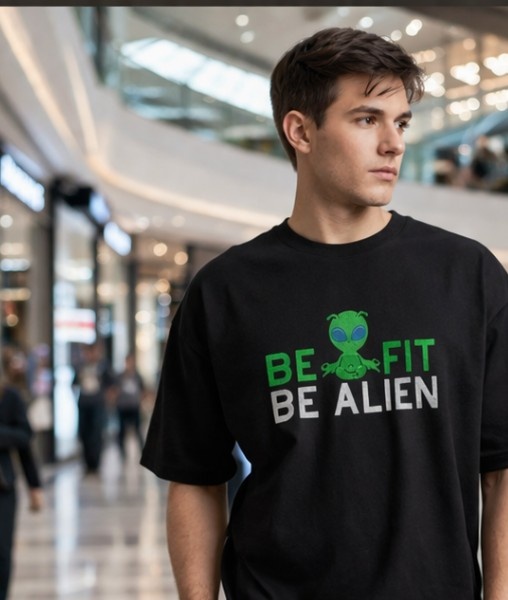 Upgrade your streetwear game with this bold and playful “Be Fit Be Alien” embroidery oversized T-shirt. Designed for those who like to stand out, this tee blends quirky aesthetics with everyday comfort.