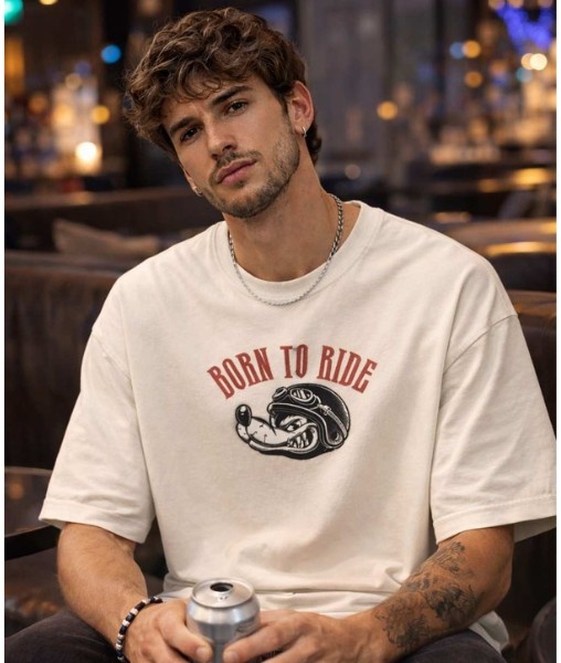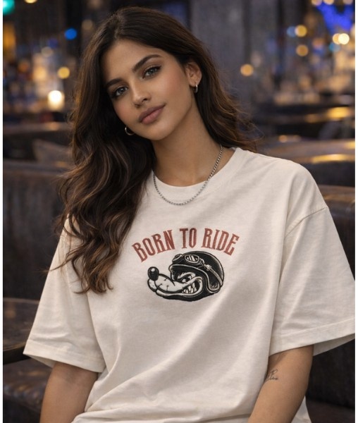 Elevate your streetwear game with the Born to Ride Embroidered Oversized T-Shirt, now reimagined in a premium stitched finish. Designed for both men and women, this unisex piece blends rugged biker energy with refined craftsmanship.